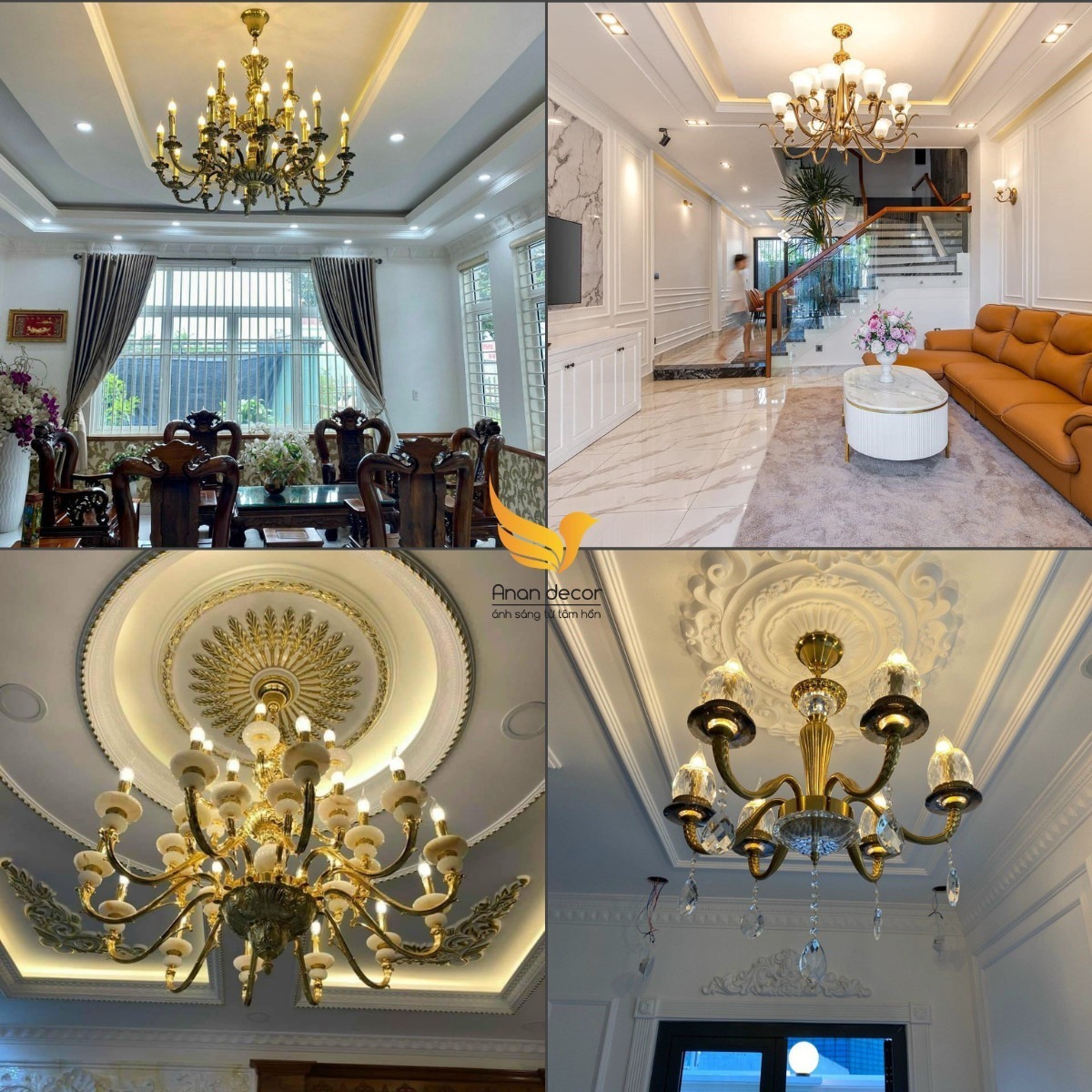 Đèn chùm đồng cổ điển tạo ra nét quyến rũ, sang trọng cho các biệt thự đẳng cấp. An An Decor hân hạnh tư vấn quý khách về dòng đèn này.