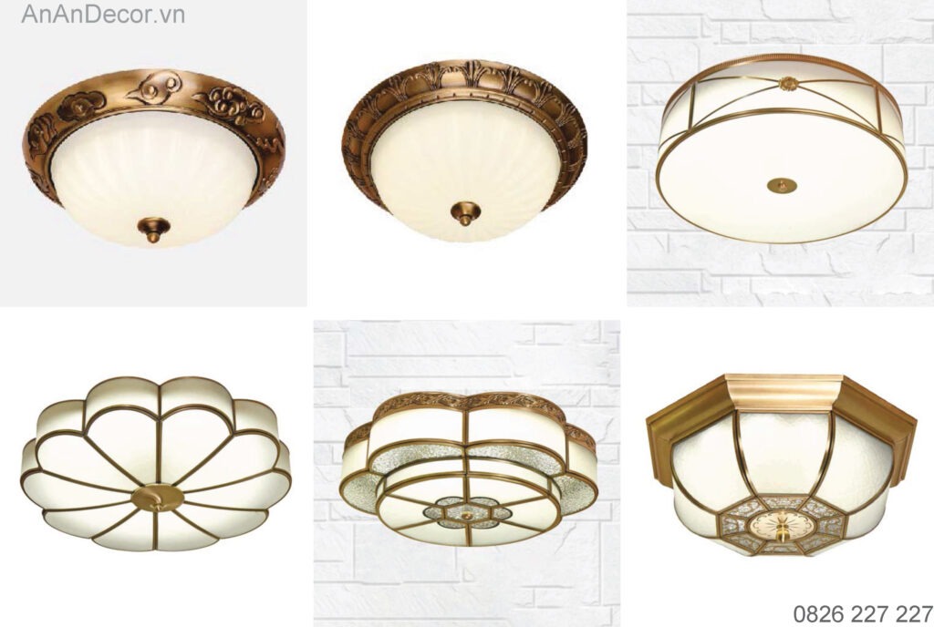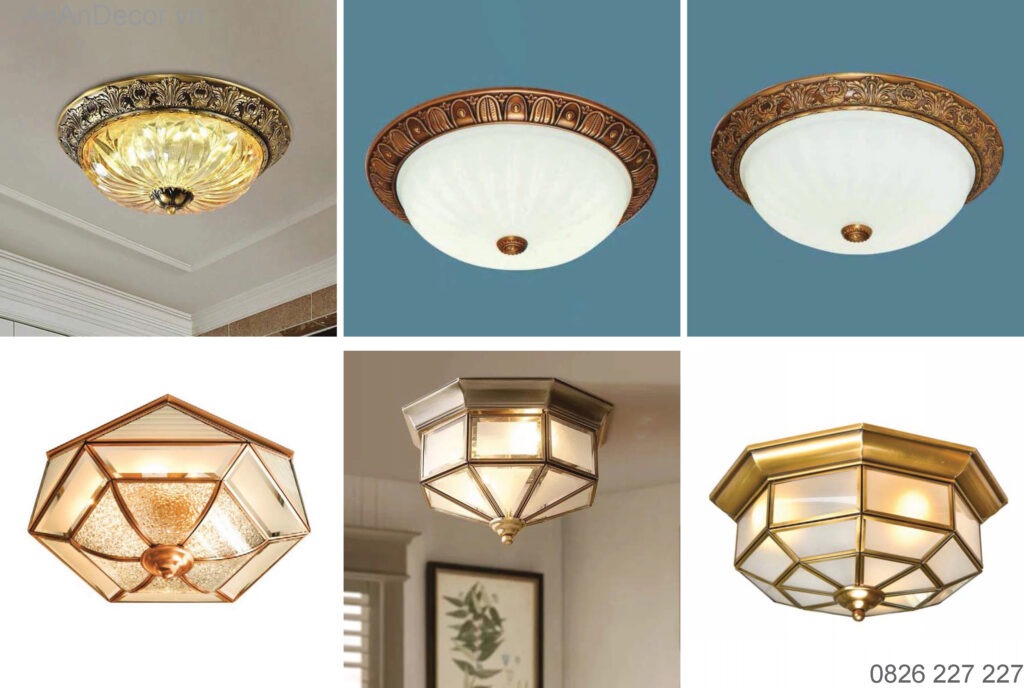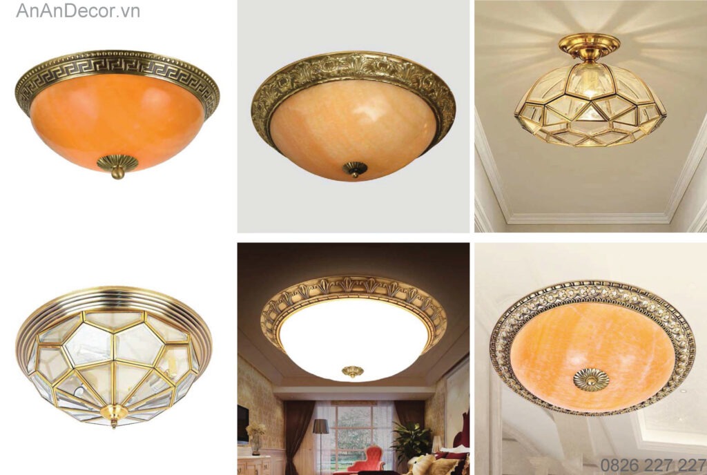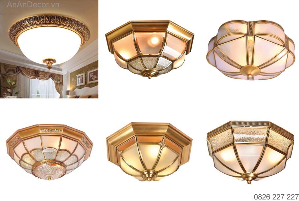 Mẫu Đèn Ốp Trần Trang Trí Đồng Tân Cổ Điển Cao Cấp Cho Biệt Thự Nhà Phố