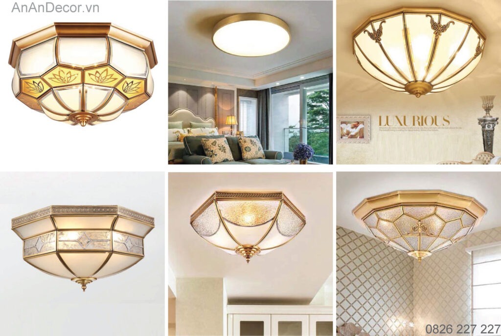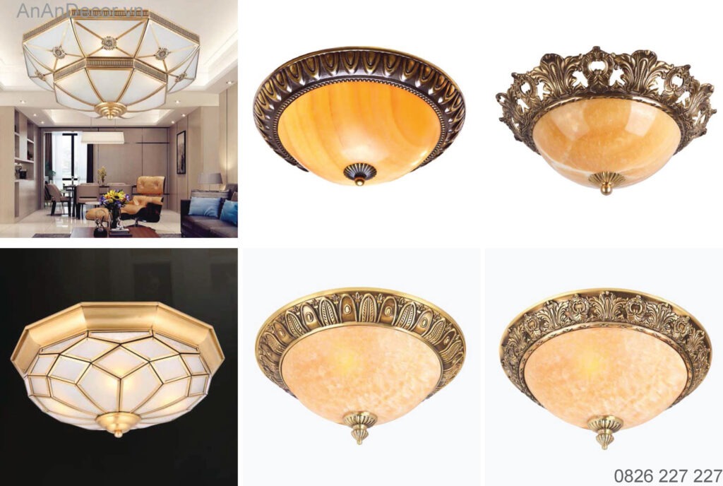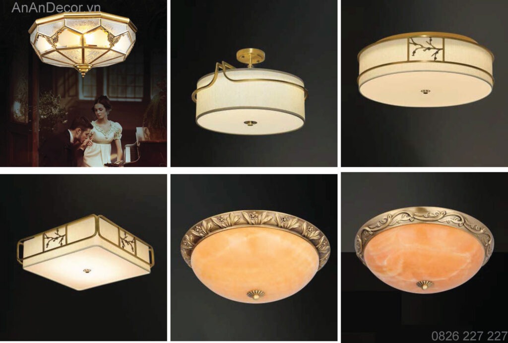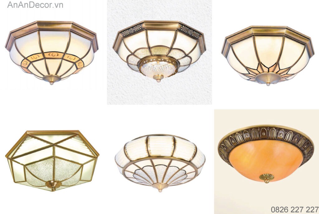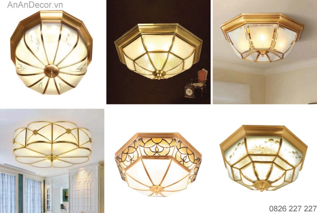 Mẫu Đèn Ốp Trần Trang Trí Đồng Tân Cổ Điển Cao Cấp Cho Biệt Thự Nhà Phố