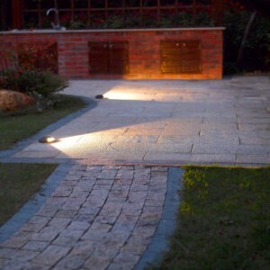 Đèn được lắp âm chìm hoàn toàn dưới mặt đất, chỉ lộ phần mặt kính phía trên – tạo cảm giác hiện đại, gọn gàng và sang trọng. Điều này giúp không vướng víu khi di chuyển, đồng thời vẫn tạo hiệu ứng ánh sáng rọi từ dưới lên vô cùng ấn tượng.