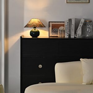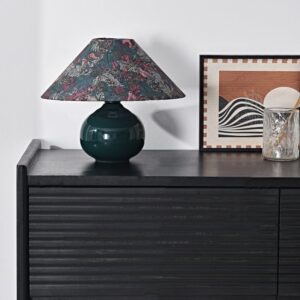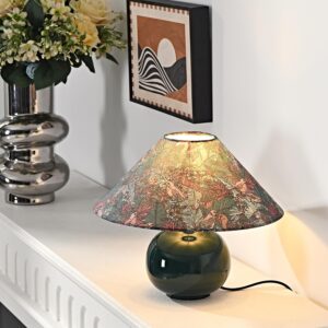 Thân đèn làm từ gốm sứ tráng men thủ công, kết hợp cùng chao vải bố họa tiết hoa văn cổ điển có khả năng tán sáng tốt và dễ vệ sinh. Từng chi tiết đều được chế tác tỉ mỉ, đảm bảo tính thẩm mỹ và độ bền theo thời gian.