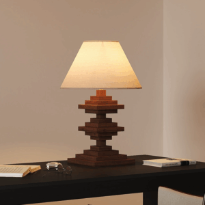 Đèn bàn gỗ tháp khối chao vải BAG-24N