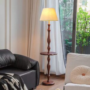 Đèn cây gỗ tích hợp bàn trà chao vải tiện dụng DCA-01T