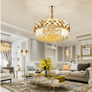 | Chất liệu | inox sơn vàng bóng, pha lê K9 |