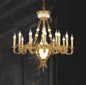 Đèn chùm DCD8121 chinh phục mọi ánh nhìn ngay từ lần đầu tiên nhờ thiết kế lấy cảm hứng từ phong cách hoàng gia châu Âu. Thân đèn được chế tác hoàn toàn từ đồng nguyên chất, tạo nên những đường nét mềm mại, uốn lượn tinh tế, từng chi tiết hoa văn đều được chạm khắc tỉ mỉ, thể hiện bàn tay tài hoa của các nghệ nhân.