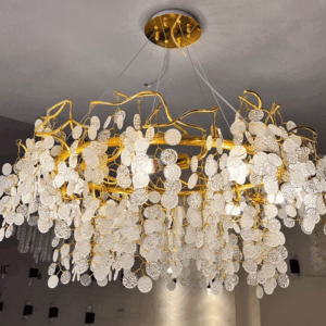 Mang trong mình vẻ đẹp giao thoa giữa nghệ thuật thiết kế hiện đại và sự lộng lẫy cổ điển, Đèn chùm pha lê cao cấp TPL-6017/600 chính là điểm nhấn hoàn hảo cho không gian sống đẳng cấp. Sản phẩm được chế tác với khung kim loại mạ vàng óng ánh, kết hợp cùng hàng trăm chi tiết pha lê cao cấp hình tròn được cắt gọt công phu, tạo nên hiệu ứng ánh sáng lung linh và huyền ảo như những giọt sương đọng trên cành lá vàng rực.