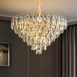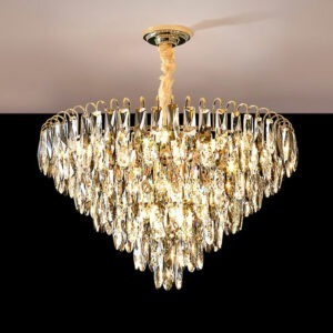 Nếu bạn đang tìm kiếm một mẫu đèn chùm pha lê cao cấp hội tụ đủ các yếu tố: sang trọng, tinh tế và hiện đại – thì TPL 8173/600 chính là lựa chọn hoàn hảo. Với thiết kế độc đáo dạng tam giác úp ngược, từng dải pha lê lấp lánh được sắp xếp khéo léo tạo hiệu ứng ánh sáng rực rỡ và đầy mê hoặc, mẫu đèn này là điểm nhấn lý tưởng cho không gian phòng khách, phòng tiệc, sảnh lớn hay những công trình yêu cầu sự đẳng cấp.