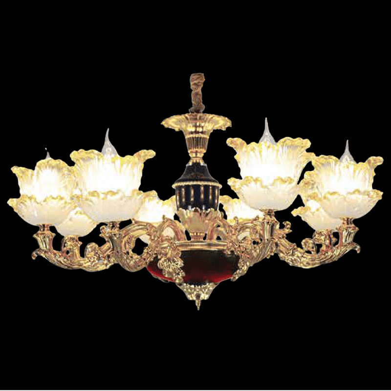 CNQT229 sở hữu phần chao đèn hình hoa sen cách điệu màu trắng kem pha viền vàng, tạo hiệu ứng ánh sáng mềm mại, dịu nhẹ và đầy quyến rũ. Thân đèn được chế tác từ hợp kim đúc xi vàng kết hợp với lớp sơn đen mờ bóng đầy chiều sâu – một điểm nhấn làm nổi bật nét cổ điển nhưng không kém phần hiện đại.