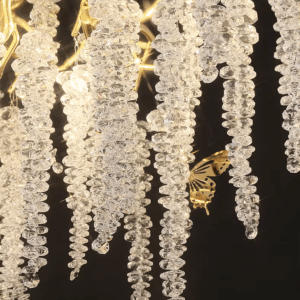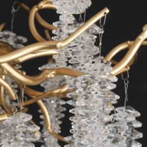 - Chất liệu cao cấp khác nhau như pha lê, đồng nguyên chất, thủy tinh, hợp kim. Đem tới sự sang trọng và quý phái cho không gian được trang trí.