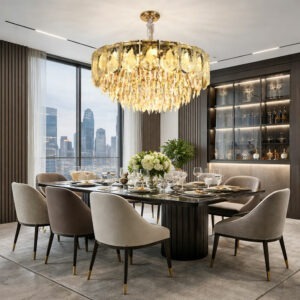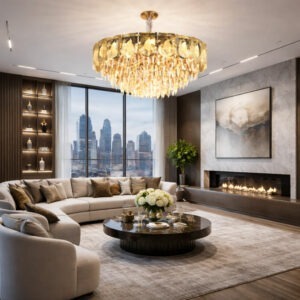 Phòng khách thượng lưu: Đóng vai trò là linh hồn của căn phòng, bộ đèn sẽ kết nối các món đồ nội thất như sofa, thảm trải sàn và tranh treo tường thành một tổng thể thống nhất và đẳng cấp.