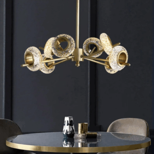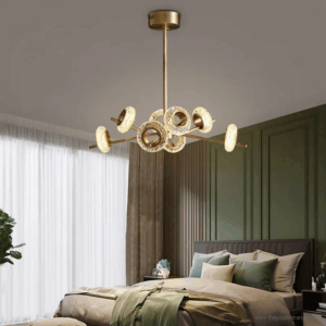 - Chất liệu cao cấp khác nhau như pha lê, đồng nguyên chất, thủy tinh, hợp kim. Đem tới sự sang trọng và quý phái cho không gian được trang trí.