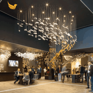 Đèn chùm thả thông tầng sảnh đón khách sạn biệt thự văn phòng hình lông vũ TTA -03