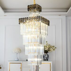 Đèn chùm thả thông tầng pha lê TPL0826 là mẫu đèn trang trí cao cấp, được thiết kế dành riêng cho các không gian trần cao và thông tầng như phòng khách biệt thự, cầu thang, sảnh lớn. Kiểu dáng thả dài kết hợp pha lê trong suốt tạo hiệu ứng ánh sáng sang trọng, giúp không gian trở nên nổi bật và cuốn hút.
