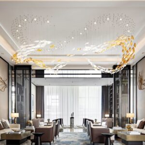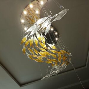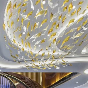 Đèn chùm thả thông tầng sảnh đón khách sạn biệt thự văn phòng hình đàn cá