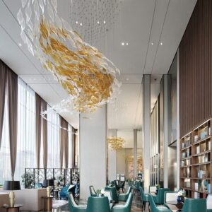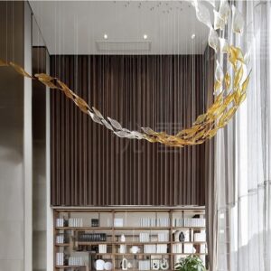 Đèn chùm thả thông tầng sảnh đón khách sạn biệt thự lá xoài xoắn LPT-03