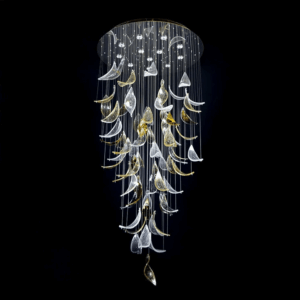 Nâng tầm không gian của bạn với Đèn chùm thác thủy tinh tuyệt đẹp của chúng tôi, một sự pha trộn tinh tế giữa nghệ thuật và ánh sáng, hoàn hảo cho những ngôi nhà sang trọng, khách sạn cao cấp hoặc những địa điểm tinh tế đang tìm cách tạo ra một điểm nhấn thực sự quyến rũ. Đặc điểm nổi bật nhất của đèn chùm là dãy các chi tiết thủy tinh được chế tác riêng biệt, mỗi chi tiết gợi nhớ đến các thiên thể trong các giai đoạn khác nhau.