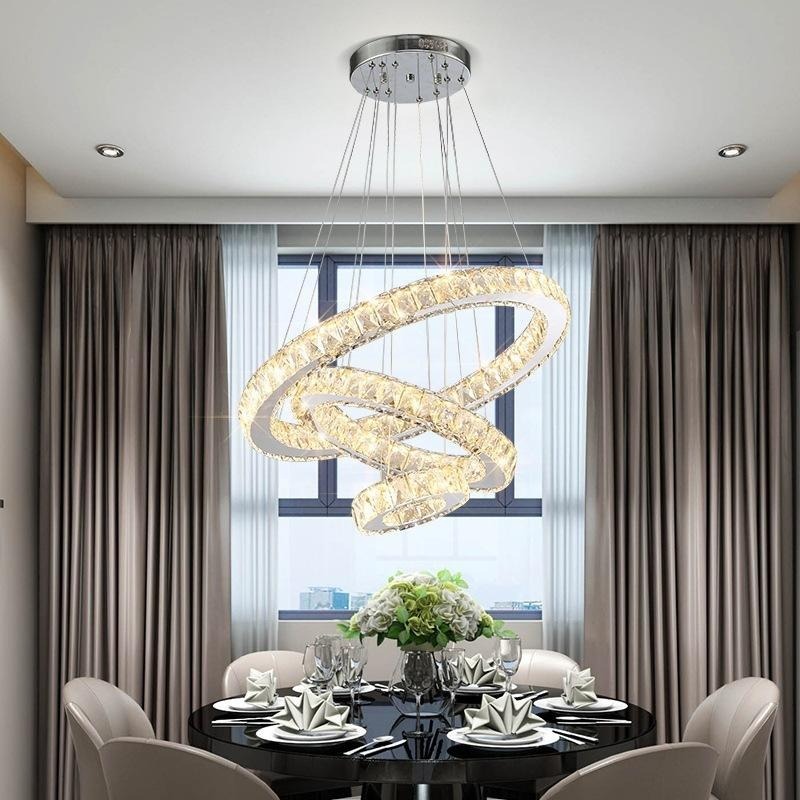 Mẫu đèn THD7032T357 sở hữu thiết kế 3 vòng tròn treo thả linh hoạt, có thể điều chỉnh độ cao từng vòng theo chiều cao trần thực tế. Kiểu dáng tối giản nhưng tinh tế, phù hợp với nhiều phong cách nội thất như hiện đại, luxury hay tân cổ điển.