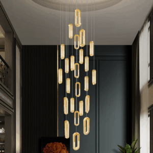 [AN] Đèn chùm thông tầng. là một trong những sản phẩm chiếu sáng cao cấp, được thiết kế đặc biệt dành cho không gian thông tầng – nơi có chiều cao trần lớn, thường xuất hiện trong các căn biệt thự, khách sạn, nhà hàng, sảnh lớn hay các công trình kiến trúc hiện đại. Với thiết kế ấn tượng, đèn chùm pha lê thông tầng không chỉ đảm bảo ánh sáng đầy đủ mà còn tạo điểm nhấn thẩm mỹ, nâng tầm không gian sống và làm việc.