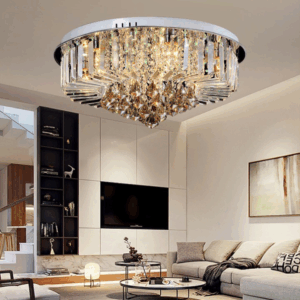 Ánh sáng lấp lánh: Khi bật đèn, ánh sáng phản chiếu qua pha lê tạo nên hiệu ứng ấn tượng, làm nổi bật toàn bộ căn phòng.