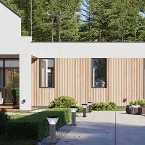 Kiểu dáng trụ tròn thanh mảnh, chiều cao trung bình từ 60–80cm, vừa đủ chiếu sáng lối đi mà vẫn đảm bảo thẩm mỹ sân vườn.
