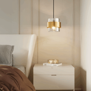 Phần đui đèn màu xi vàng tinh tế, tạo điểm nhấn cho không gian. Sự kết hợp giữa thủy tinh và hợp kim xi vàng không chỉ mang đến một vẻ đẹp hiện đại mà còn phù hợp với nhiều phong cách thiết kế nội thất khác nhau, từ cổ điển đến hiện đại.