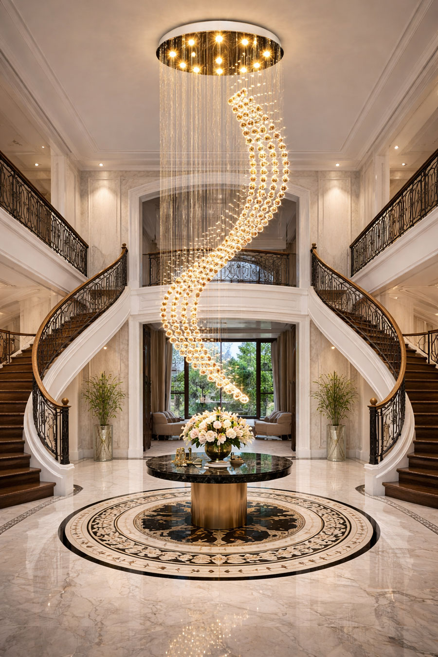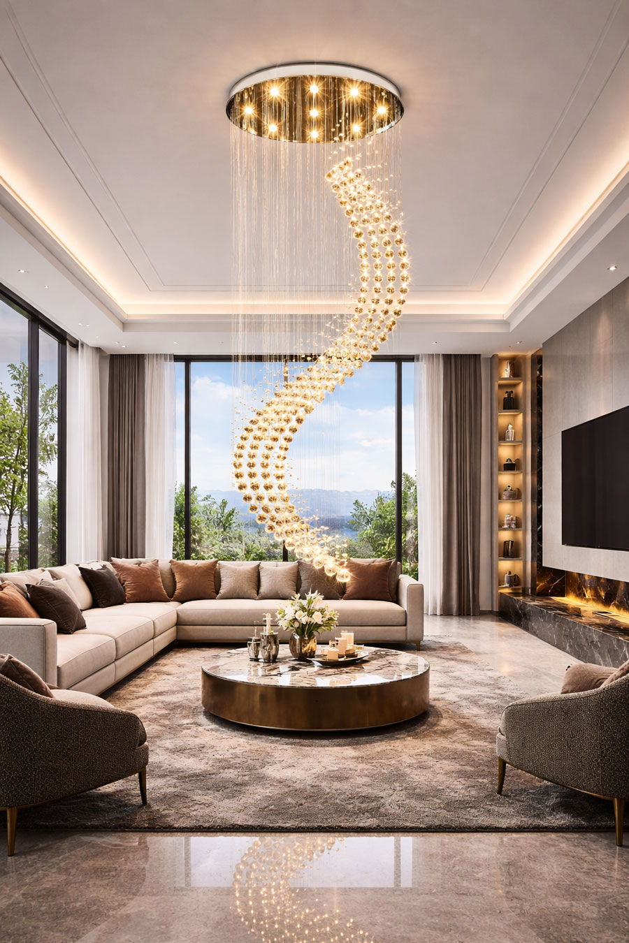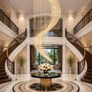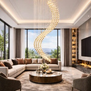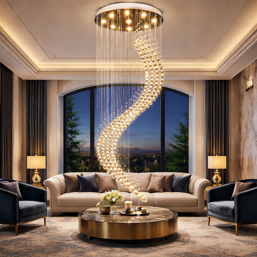 Đặc biệt, khi lắp đặt ở khu vực thông tầng hoặc phòng khách, đèn sẽ trở thành điểm nhấn trung tâm giúp không gian trở nên sang trọng và đẳng cấp hơn.