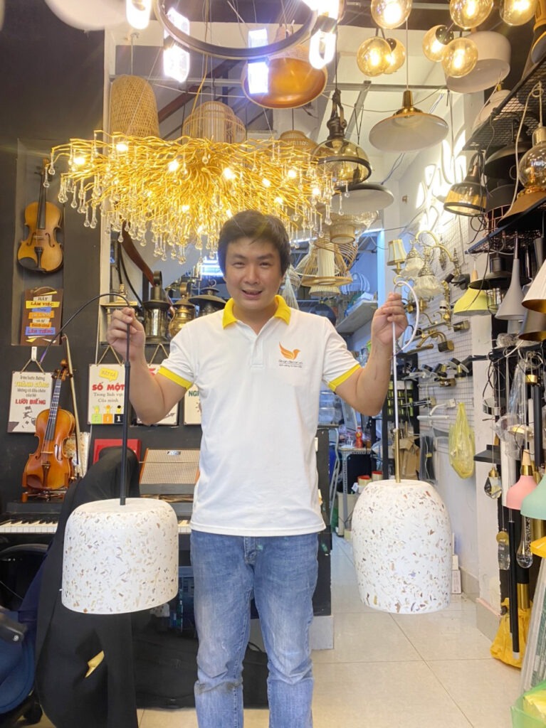 Tư vấn, thiết kế, sản xuất và tìm mẫu đèn đá mài composite– đèn đá mài Terrazoo theo yêu cầu.