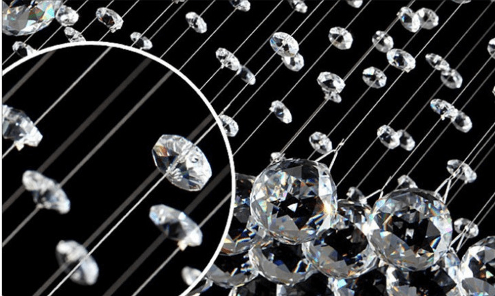 Sản phẩm sử dụng pha lê cao cấp có độ trong suốt cao, giúp ánh sáng xuyên qua hoàn hảo, tạo hiệu ứng lấp lánh tự nhiên.