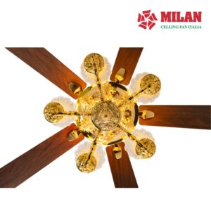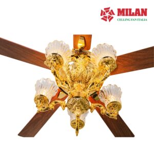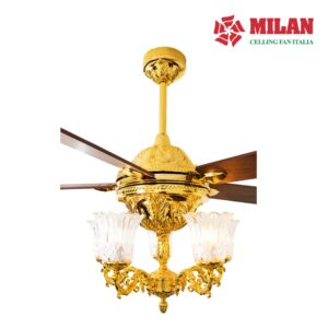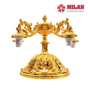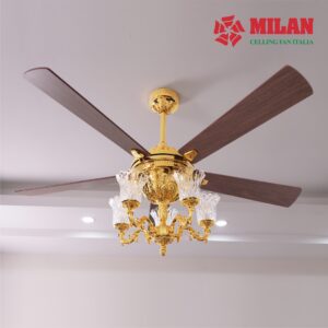 Quạt có chiều cao 69cm (chiều cao quạt có thể thay đổi dựa theo chiều cao của trần nhà). Thân quạt được làm bằng chất liệu đồng, được đúc tạo khắc vân hoa chi tiết tỉ mỉ và được mạ vàng 9999 cao cấp, sang trọng, tinh tế. Quạt thích hợp với mọi không gian từ phòng khách cổ điển tới phòng ăn và phòng bếp hay đại sảnh của những tòa nhà sang trọng,… tạo nên một nét thẩm mỹ mà chỉ riêng nó đem lại.