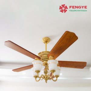 Quạt trần Italia FY586 là sản phẩm quạt trần cánh gỗ, quạt trần đèn chùm, nằm trong nhóm sản phẩm quạt trần trang trí cao cấp.